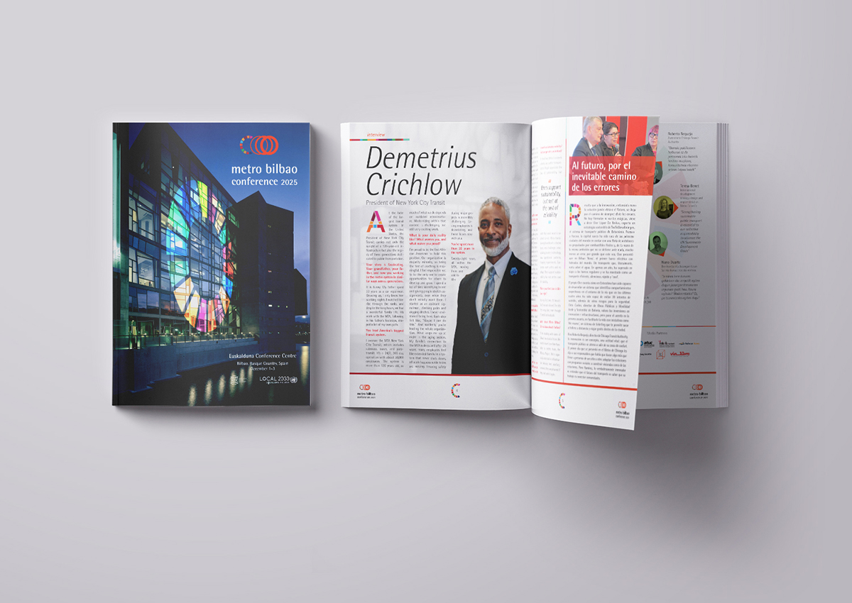 Diseño de marca y aplicación de la misma a diferentes soportes para la primera edición de la Metro Bilbao Conference. Una conferencia que reunió a profesionales, instituciones y empresas líderes del sector de la movilidad y el transporte público, con el objetivo de promover el intercambio de conocimiento, la generación de sinergias y nuevas miradas sobre la movilidad sostenible y la Agenda 2030.